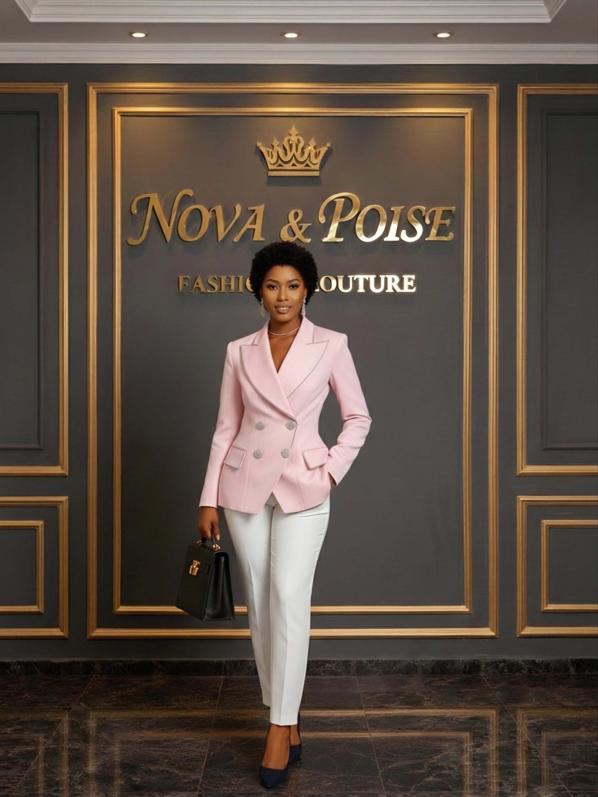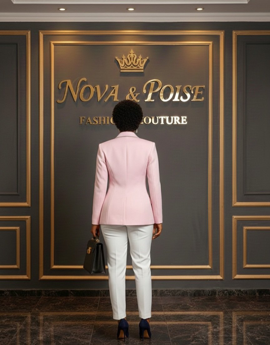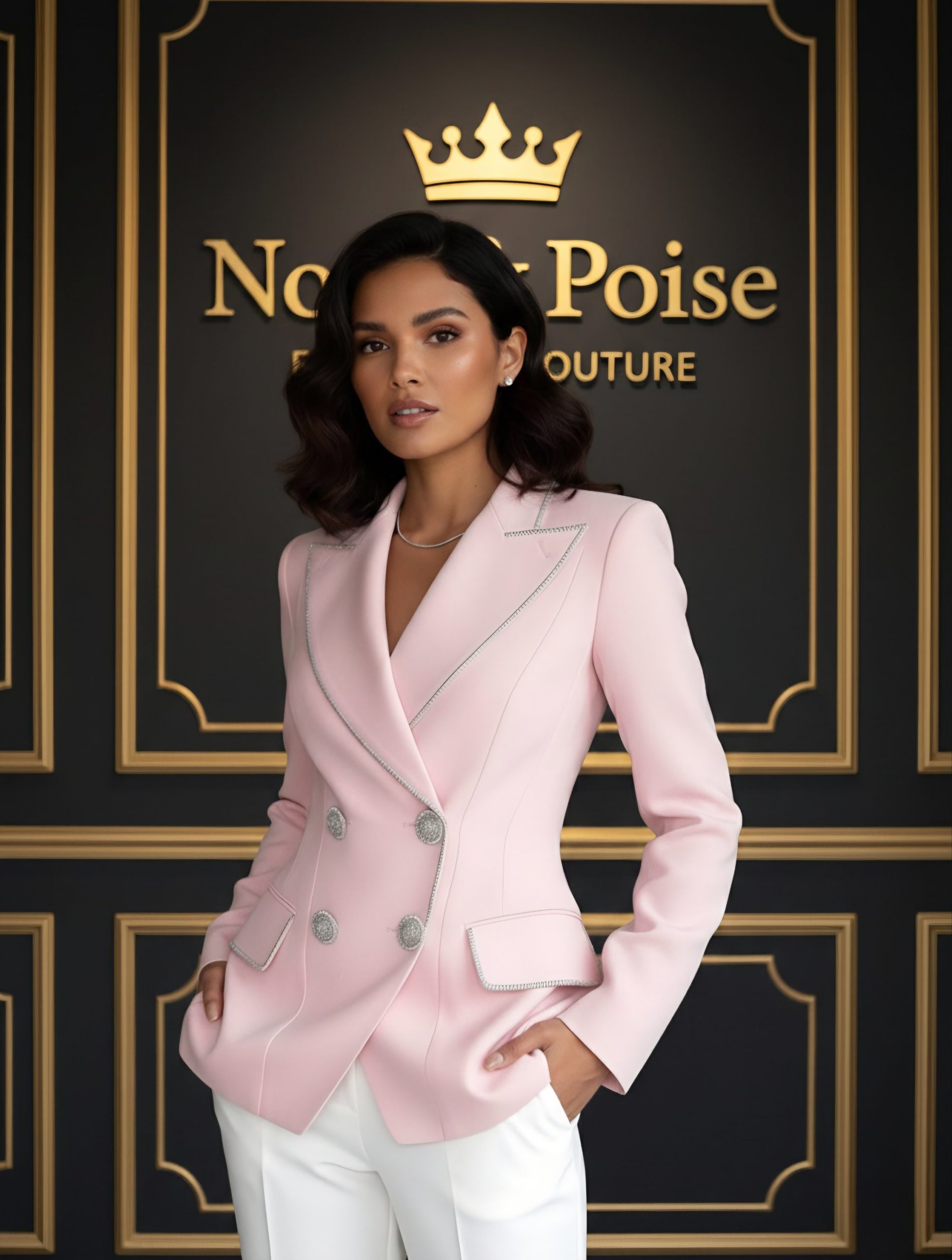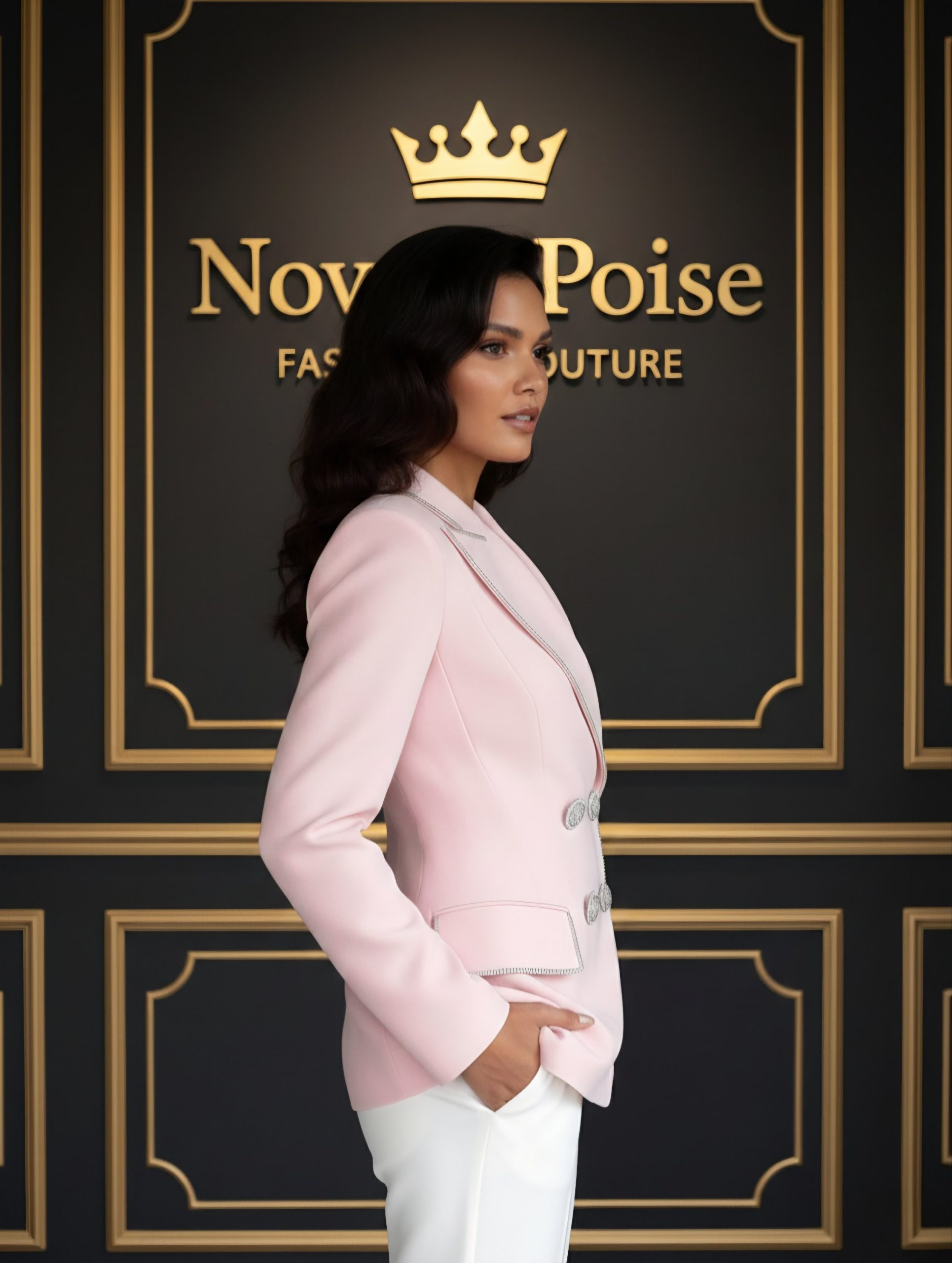 Elevate your signature style with the Nova & Poise Luxury Pink Embellished Double-Breasted Blazer, a couture tailored masterpiece designed for women who command elegance and presence. Crafted from premium stretch crepe and engineered with sculpted panel lines, this blazer delivers a flattering, structured fit that defines the waist while providing luxurious comfort.